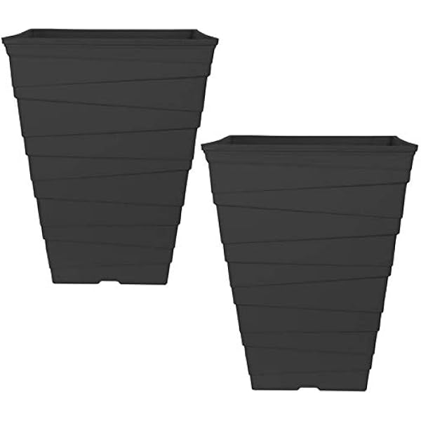 2 X 15 Litre Aged Black Large Plant Pots Tall Square Plastic Planters Outdoor Garden Amazon Co Uk Garden
